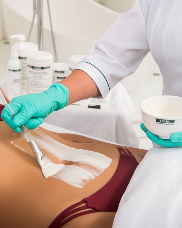 DMK’s BODY SCULPTING Treatment involves detoxifying the skin and using special formulations that penetrate deeply below the surface of the skin to restore its own natural processes back to healthy, normal levels.